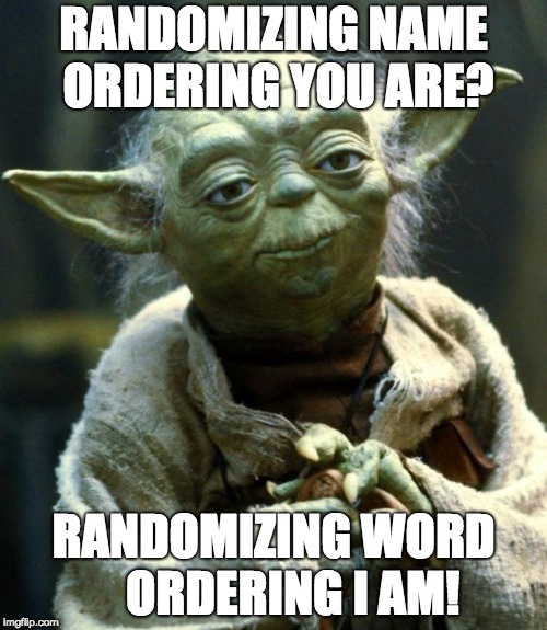 • (Nov 14, 2019) Taking cognizance of these biases, starting October 24, 2019, the Machine Learning Department at CMU has randomized the ordering of students and faculty on its webpages. One concern was that users may get confused since the standard practice is to order alphabetically. To this end, we put a small bar on top of the page indicating these biases and a link to this post for details. Our webmaster tells us that the user experience has been same as before (along with a lot of positive feedback that this was the right thing to do). Thanks to Robeto Iriondo, Aaditya Ramdas and Roni Rosenfeld!