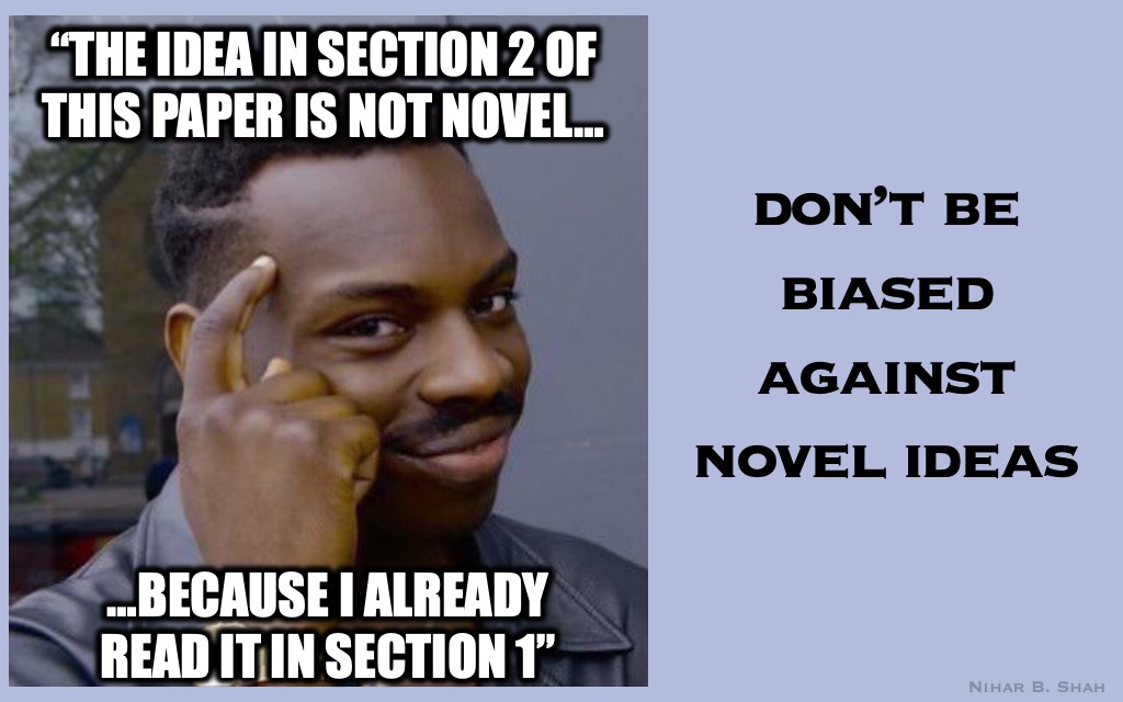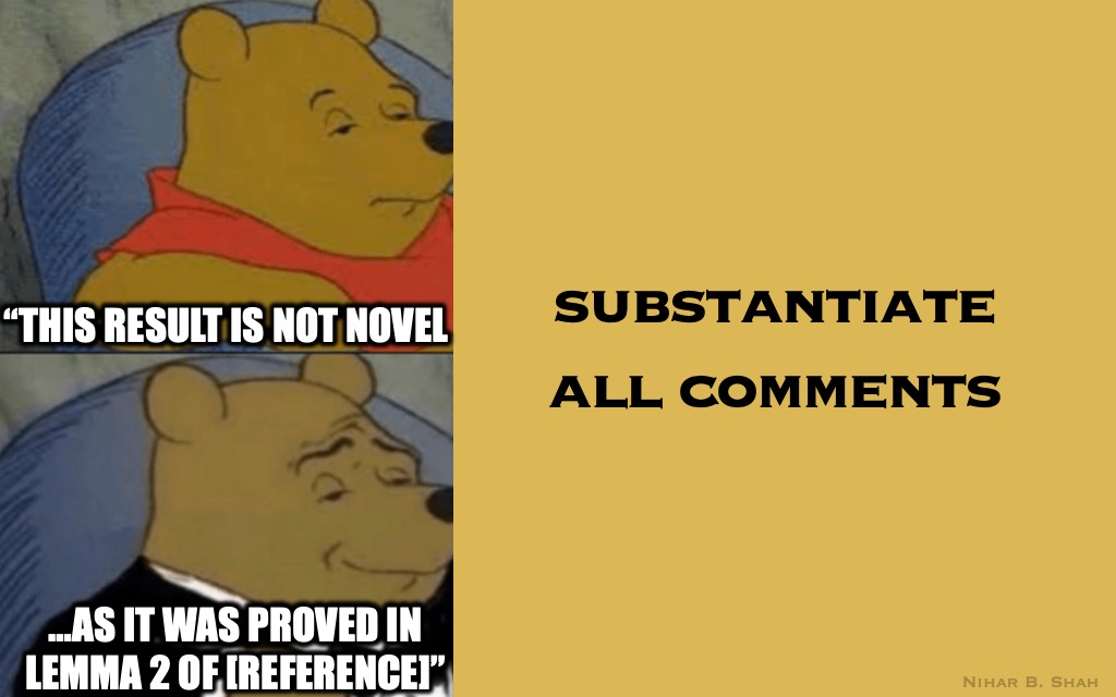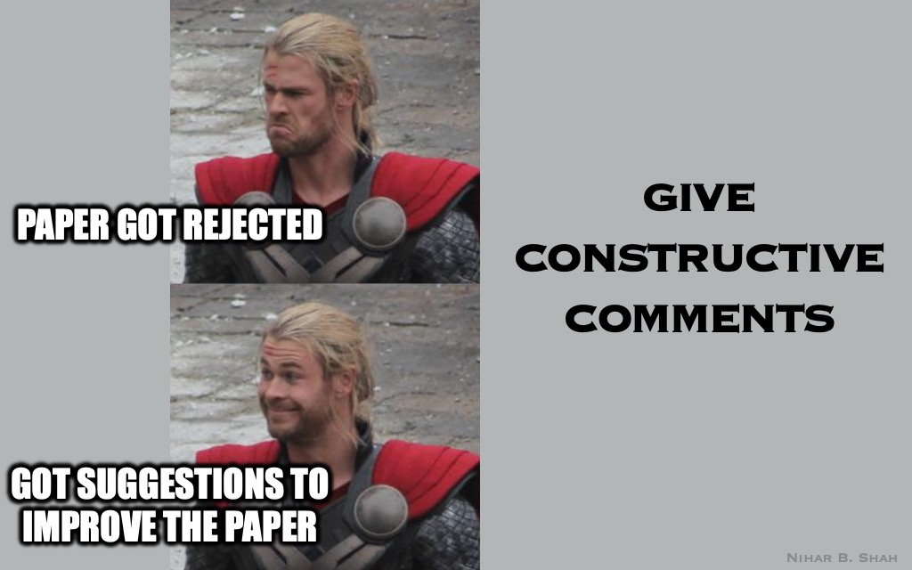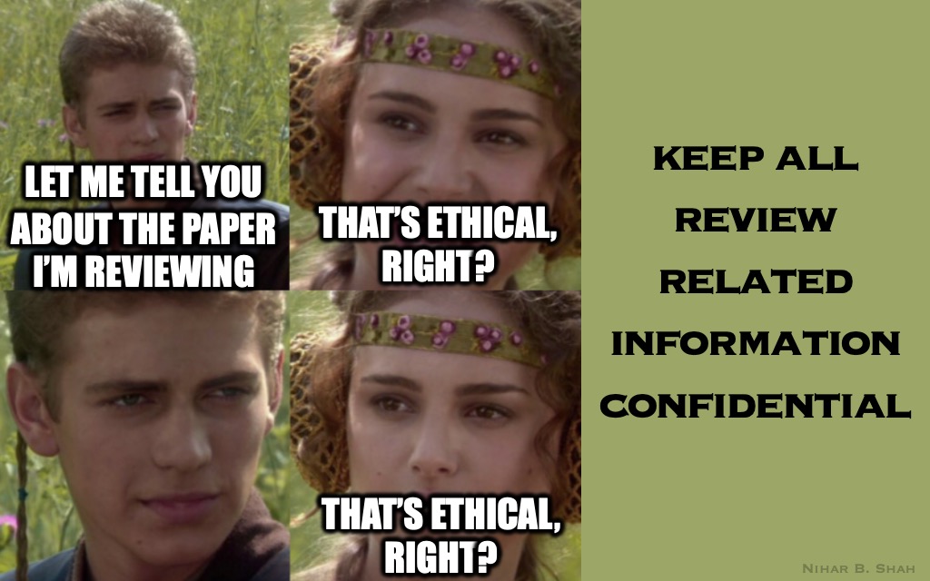 Peer Reviewer Guidelines, Memefied Nihar B. Shah Uncategorized October 2, 2024December 13, 2024 1 Minute Please follow these guidelines if you are peer reviewing (based on research on peer review). In summary: Share this: Click to share on X (Opens in new window) X Click to share on Facebook (Opens in new window) Facebook Like Loading... Published October 2, 2024December 13, 2024